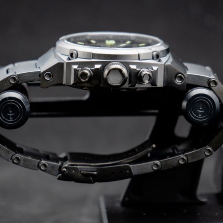 インデックスと針は夜に蓄光により輝き、旅行中や暗い場所での作業に大きな効果を発揮。存在感の割にケースは非常に軽量で、手首に負担を掛けません。このプロフェッショナルなアナログ&デジタル時計は、日常においても他に類を見ない唯一無二の体感を約束します。ケースの色と仕上げは、Black、Silver、マットGreyから選択できます。