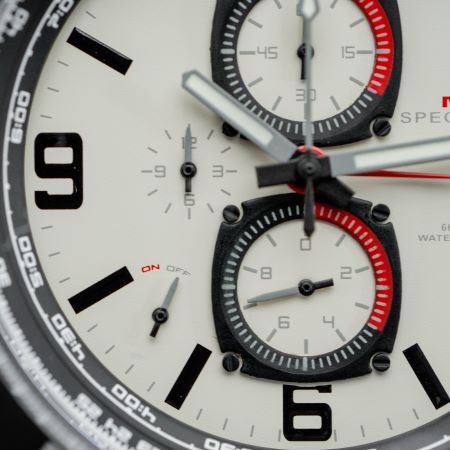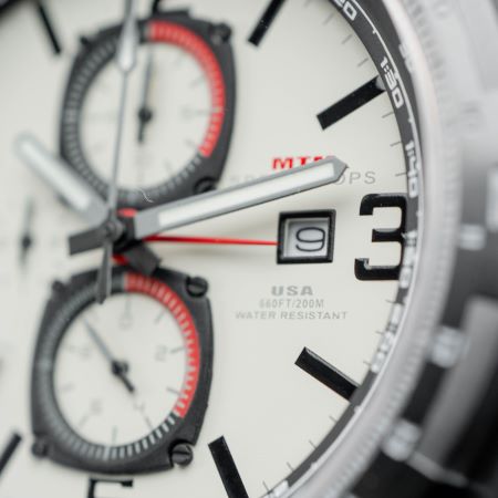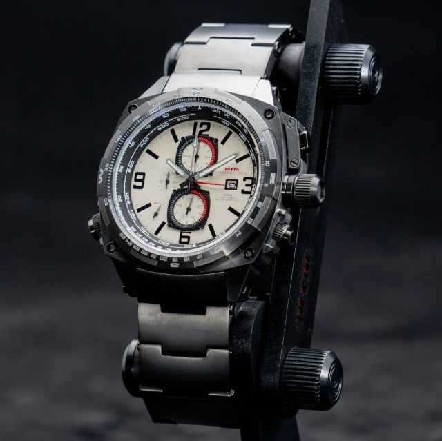 MTM COBRAは伝統的なスライドルールベゼルを備えたパイロットウォッチです。オーナーになった誰しもが味わえる、大胆で上品な外観と所有感。何かを達成しなければならない人、ビジネスマンにとって貴重な全てを凝縮しています。 SUPER LUMINOVA C3を使用した視認性の高い時分針。 スイミング、サーフィン、ボート、水上スキー、ウエイクボード、ジェットスキー、スキンダイビング、シュノーケリングなどに対応する660フィート/200メートル防水。 アラーム付きクオーツクロノグラフムーブメント。 伝統的なパイロットスライドルールベゼルを備えたBlack、SilverまたはGrey仕上げチタンケースとロックスクリューダウンプッシャーとリューズ。 Outdoorで過酷な条件に耐える反射防止、耐傷加工済サファイアクリスタルガラス。 ミリタリーのプロも愛用するプロフェッショナル&タクティカルな基本仕様。 アウトドアに最適なラバーベルト(別売) ビジネスシーンでも映えるチタンベルト