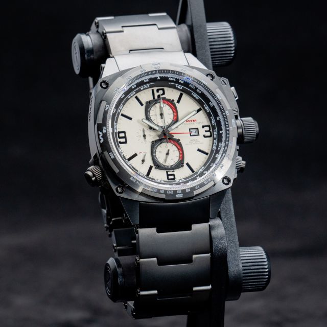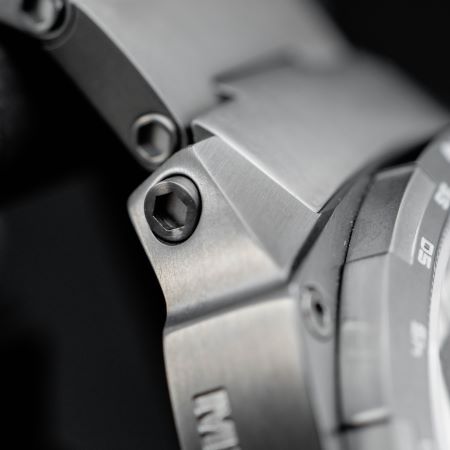 ケースは47.5 mmのチタン製ケース。ロック式のねじ込み式リューズとプッシャーが付いています。プッシャーはクロノグラフのサブダイアルを制御して、正確な時間を測定。COBRAは、MTMスローガンの一例”Built for Action”である陸、海、空で活躍する全ての男性に高い人気を誇るモデルです。Main features