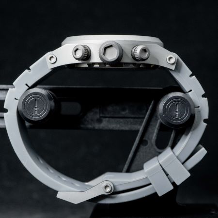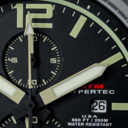 HYPERTEC CHRONOはMTMの時計のすべてのクオリティを兼ね備えながらカジュアル・ビジネスにも対応します。316Lステンレスケース、クロノクォーツ、耐傷加工の強化ガラスで、美しいクロノグラフメンズウォッチを実現します。オフィスシーンやカジュアルシーンをはじめとしてさまざまなシーンでも映えるデザインを実現しています。 カレンダー日付ウィンドウ、ハイグレードなクオーツクロノグラフムーブメント。 真鍮ダイヤルと視認性の高い時分針 スイミング、サーフィン、ボート、水上スキー、ウエイクボード、ジェットスキー、スキンダイビング、シュノーケリングなどに対応する660フィート/200メートル防水。 Black DLC、Silverステンレス、サンドブラストGrey仕上げから選択可能。 ミリタリーのプロも愛用するプロフェッショナル&タクティカルな基本仕様。 カラフルでバリエーション豊富なラバーバンド しなやかで高級感を醸し出すレザーベルト(別売)Main features