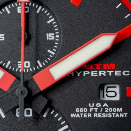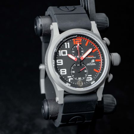 HYPERTEC CHRONOはMTMの時計のすべてのクオリティを兼ね備えながらカジュアル・ビジネスにも対応します。316Lステンレスケース、クロノクォーツ、耐傷加工の強化ガラスで、美しいクロノグラフメンズウォッチを実現します。オフィスシーンやカジュアルシーンをはじめとしてさまざまなシーンでも映えるデザインを実現しています。 カレンダー日付ウィンドウ、ハイグレードなクオーツクロノグラフムーブメント。 真鍮ダイヤルと視認性の高い時分針 スイミング、サーフィン、ボート、水上スキー、ウエイクボード、ジェットスキー、スキンダイビング、シュノーケリングなどに対応する660フィート/200メートル防水。 Black DLC、Silverステンレス、サンドブラストGrey仕上げから選択可能。 ミリタリーのプロも愛用するプロフェッショナル&タクティカルな基本仕様。 カラフルでバリエーション豊富なラバーバンド しなやかで高級感を醸し出すレザーベルト(別売)Main features