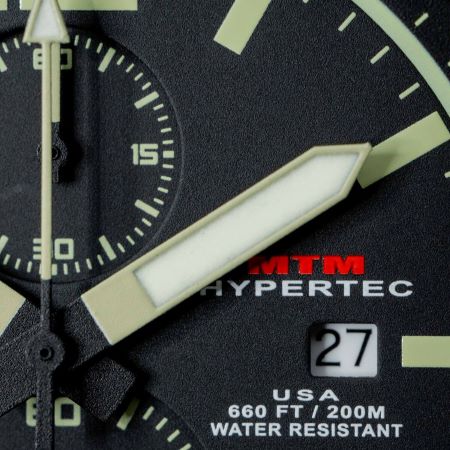 HYPERTEC CHRONOはMTMの時計のすべてのクオリティを兼ね備えながらカジュアル・ビジネスにも対応します。316Lステンレスケース、クロノクォーツ、耐傷加工の強化ガラスで、美しいクロノグラフメンズウォッチを実現します。オフィスシーンやカジュアルシーンをはじめとしてさまざまなシーンでも映えるデザインを実現しています。 カレンダー日付ウィンドウ、ハイグレードなクオーツクロノグラフムーブメント。 真鍮ダイヤルと視認性の高い時分針 スイミング、サーフィン、ボート、水上スキー、ウエイクボード、ジェットスキー、スキンダイビング、シュノーケリングなどに対応する660フィート/200メートル防水。 Black DLC、Silverステンレス、サンドブラストGrey仕上げから選択可能。 ミリタリーのプロも愛用するプロフェッショナル&タクティカルな基本仕様。 カラフルでバリエーション豊富なラバーバンド しなやかで高級感を醸し出すレザーベルト(別売)Main features