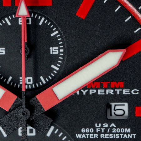 HYPERTEC CHRONOはMTMの時計のすべてのクオリティを兼ね備えながらカジュアル・ビジネスにも対応します。316Lステンレスケース、クロノクォーツ、耐傷加工の強化ガラスで、美しいクロノグラフメンズウォッチを実現します。オフィスシーンやカジュアルシーンをはじめとしてさまざまなシーンでも映えるデザインを実現しています。 カレンダー日付ウィンドウ、ハイグレードなクオーツクロノグラフムーブメント。 真鍮ダイヤルと視認性の高い時分針 スイミング、サーフィン、ボート、水上スキー、ウエイクボード、ジェットスキー、スキンダイビング、シュノーケリングなどに対応する660フィート/200メートル防水。 Black DLC、Silverステンレス、サンドブラストGrey仕上げから選択可能。 ミリタリーのプロも愛用するプロフェッショナル&タクティカルな基本仕様。 カラフルでバリエーション豊富なラバーバンド しなやかで高級感を醸し出すレザーベルト(別売)Main features