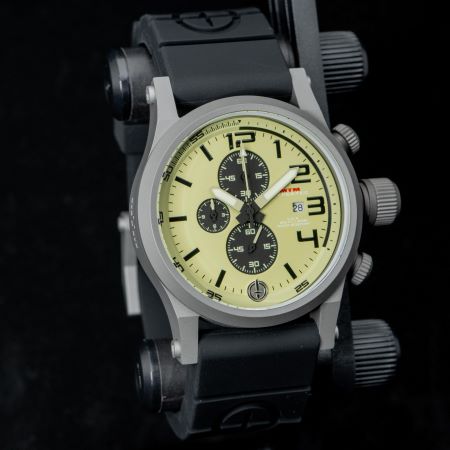 HYPERTEC CHRONOはMTMの時計のすべてのクオリティを兼ね備えながらカジュアル・ビジネスにも対応します。316Lステンレスケース、クロノクォーツ、耐傷加工の強化ガラスで、美しいクロノグラフメンズウォッチを実現します。オフィスシーンやカジュアルシーンをはじめとしてさまざまなシーンでも映えるデザインを実現しています。 カレンダー日付ウィンドウ、ハイグレードなクオーツクロノグラフムーブメント。 真鍮ダイヤルと視認性の高い時分針 スイミング、サーフィン、ボート、水上スキー、ウエイクボード、ジェットスキー、スキンダイビング、シュノーケリングなどに対応する660フィート/200メートル防水。 Black DLC、Silverステンレス、サンドブラストGrey仕上げから選択可能。 ミリタリーのプロも愛用するプロフェッショナル&タクティカルな基本仕様。 カラフルでバリエーション豊富なラバーバンド しなやかで高級感を醸し出すレザーベルト(別売)Main features